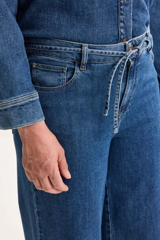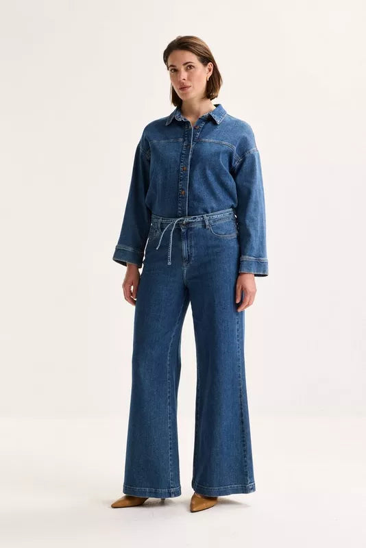 Dit jeanshemd heeft karakter — en dat zie je. Maar zodra je het aantrekt, voel je hoe de elastische stof, elegante snit en dubbele rugplooi jouw vormen subtiel omarmen.
