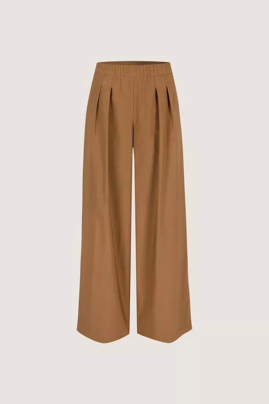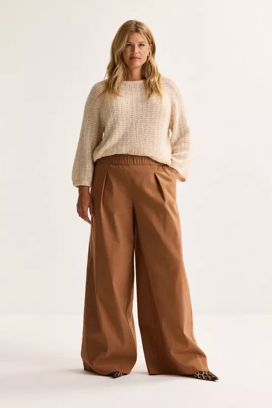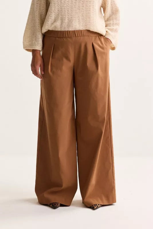 Deze palazzobroek in stretchy bengaline zit als gegoten en oogt eigentijds dankzij de ingestikte bandplooi die het silhouet structuur geeft.