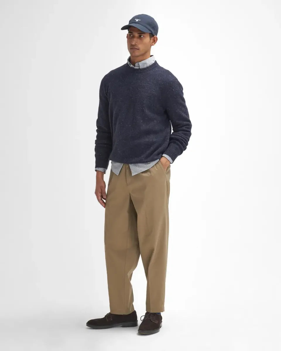 De Barbour Tainsbury trui met ronde hals is gemaakt van 100% wol en vormt een premium laagje onder je outfit.