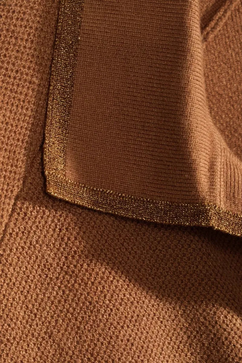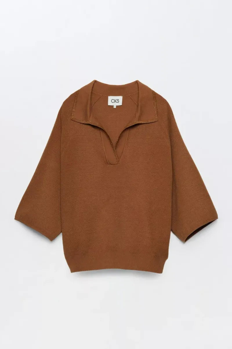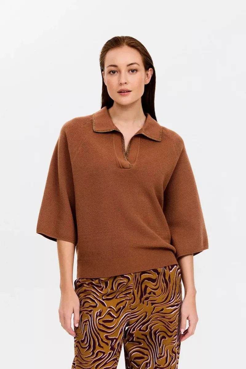 Polo's are back! Met deze on-trend polotrui voor dames haal je het perfecte item in huis voor deze herfst en winter. Deze gebreide trui heeft een uitgesneden polo-kraag met een glitterboord en korte, wijde mouwen voor een relaxte look.