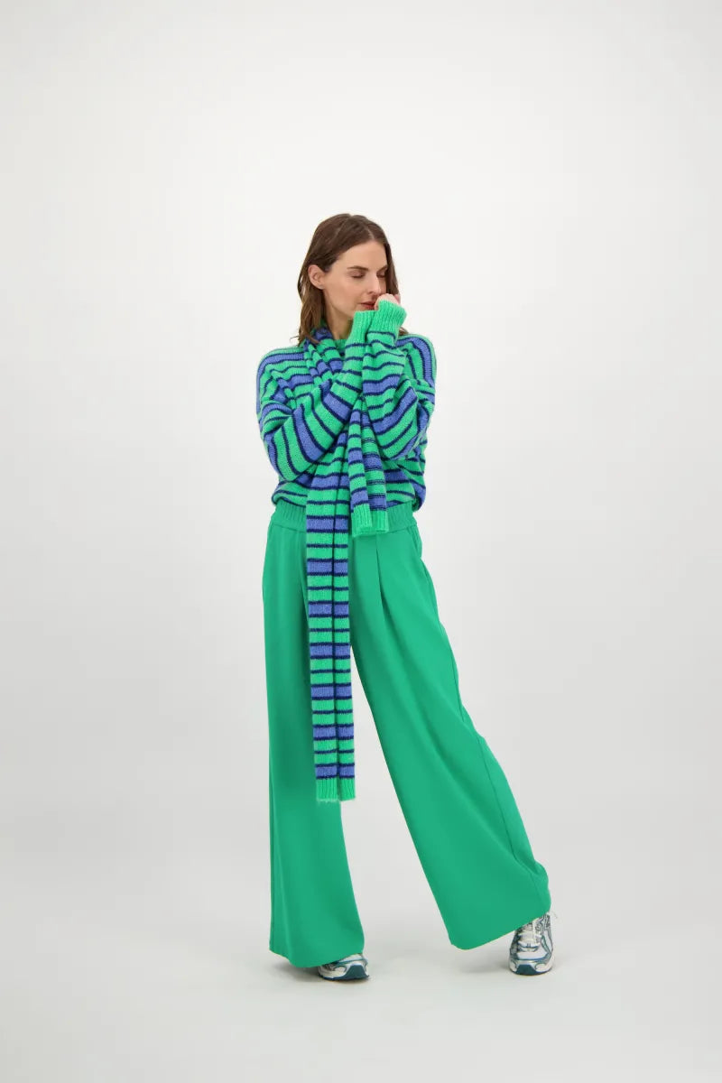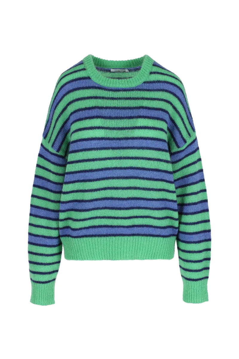 Kleur op kleur in perfect evenwicht: deze gestreepte knit in groen, medium blauw en donkerblauw is een speelse essential met een grafische twist. De klassieke pasvorm en zachte stof maken het een makkelijke go-to voor elke dag, terwijl de kleurencombinatie zorgt voor een frisse, eigentijdse look.