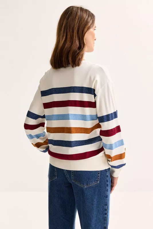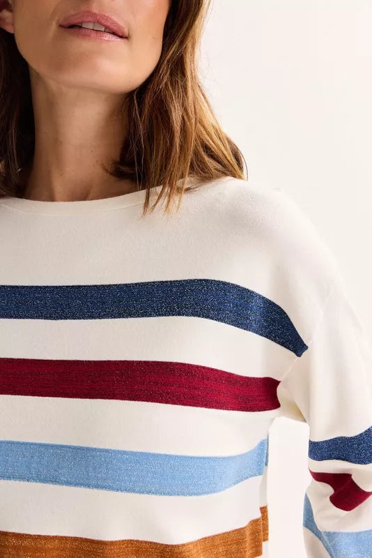De veelkleurige lurexstrepen geven haar een subtiele sparkle die elke outfit oplicht.