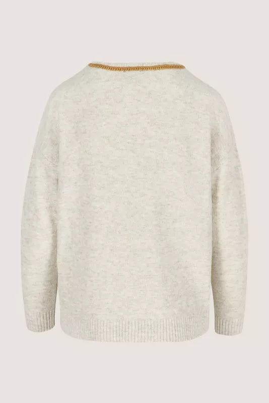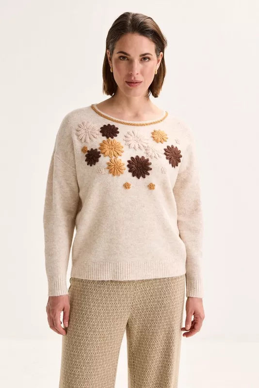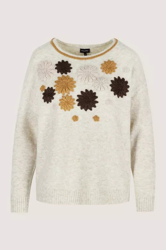 Hou je van een echte wintertrui, maar niet van het gekriebel? Dan is deze boxy meléetrui zonder wol een schot in de roos. De laag ingezette mouwen en het losse silhouet zorgen voor een relaxte fit, terwijl het rustieke bloemenborduursel in dikke draad een subtiele Scandinavische twist toevoegt. De trui voelt zacht aan, ziet er stoer uit en is verrassend veelzijdig: draag hem casual op een sporty manier of als onverwacht accent bij een meer geklede outfit. Warmte en stijl, zonder compromissen.
