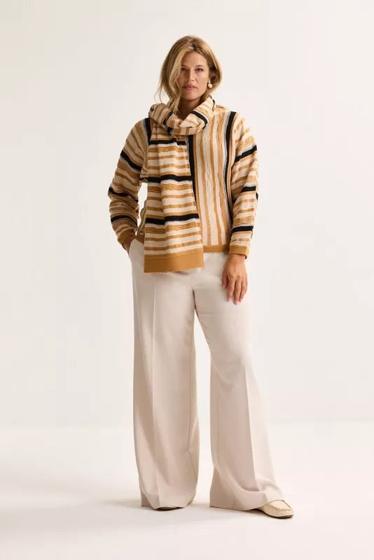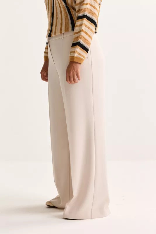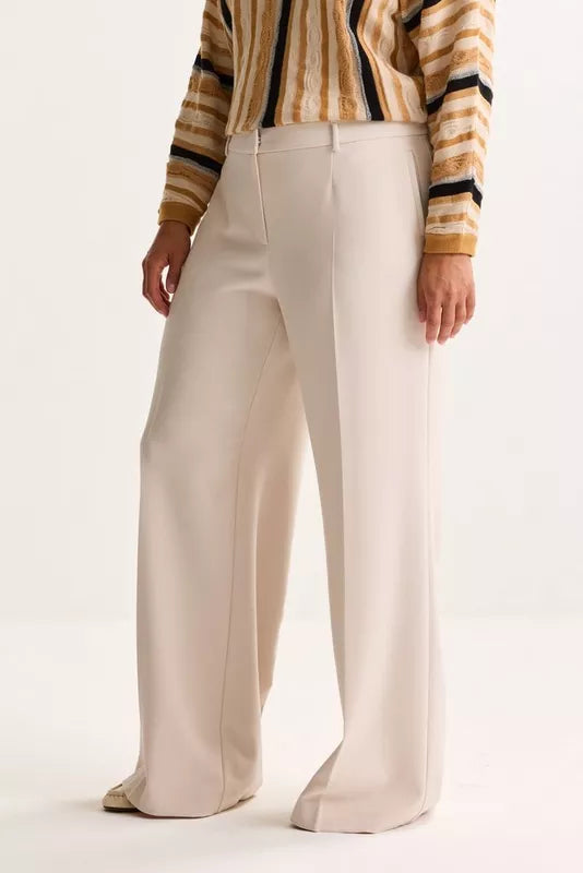 Stijl en gemak in één beweging: deze elegante wijde broek in elastische stof heeft een rits vooraan, een elastische tailleband met rugelastiek en riemlussen voor een ceintuur van 4 cm. De afgebiesde zakken geven een chic accent. Machinewasbaar en strijkvrij—een broek die je kleedt én ontzorgt.