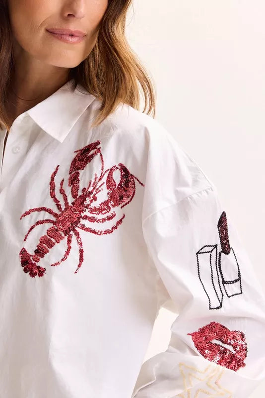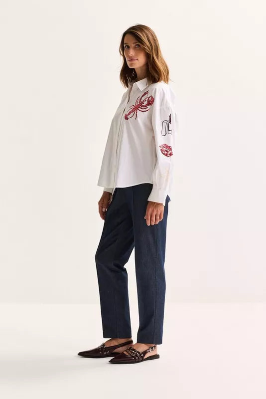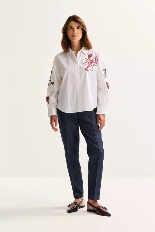 Dit zachte witkatoenen hemdje bewijst dat preppy ook feestelijk kan zijn.