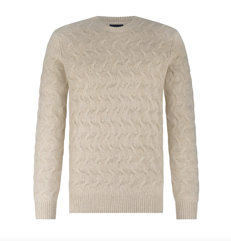 Deze regular fit trui met ronde hals is uitgevoerd in een verfijnd kabelgebreid motief dat een karakteristieke vlechtstructuur creëert.