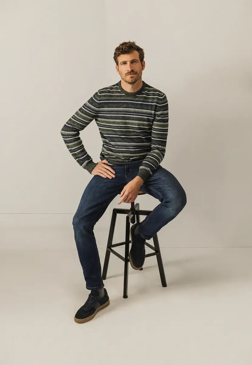 Deze trui met ronde hals is uitgevoerd in een regular fit en valt op door het speelse, meerkleurige streepdessin. Dankzij de mix van acryl, katoen en polyester voelt het breisel zacht aan en blijft het mooi in vorm. Ribgebreide boorden geven een sportieve afwerking, terwijl het tijdloze ontwerp moeiteloos combineert met zowel casual als nettere outfits.