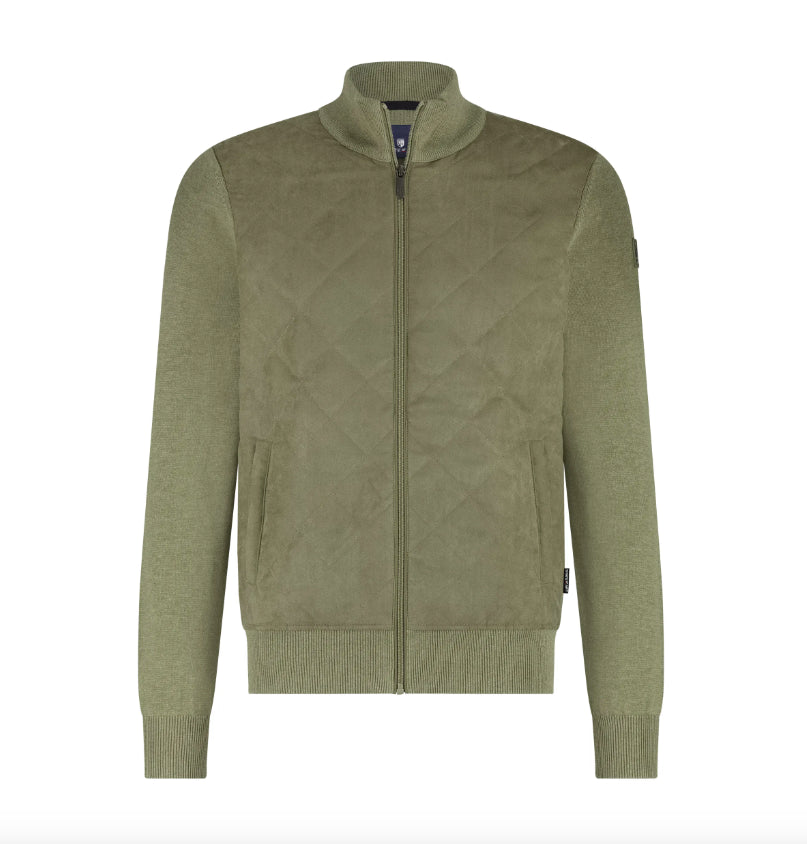 Dit vest met hoge kraag en regular fit heeft een voorzijde van gestepte suèdelook-stof van polyester, afgewerkt met nylon accenten. Door het gebruik van luxueus katoen voelt het comfortabel en stevig aan, terwijl de geribde boorden en ritssluiting zorgen voor een mooie pasvorm. Twee steekzakken met rits en een rubberen badge op de mouw maken het sportieve ontwerp compleet.