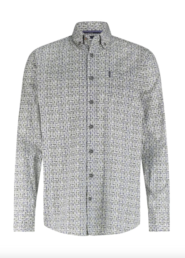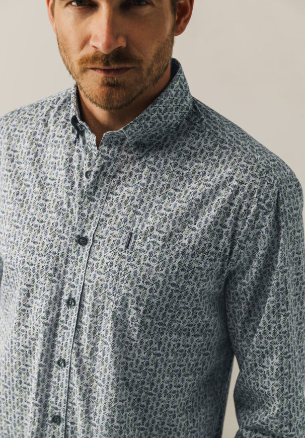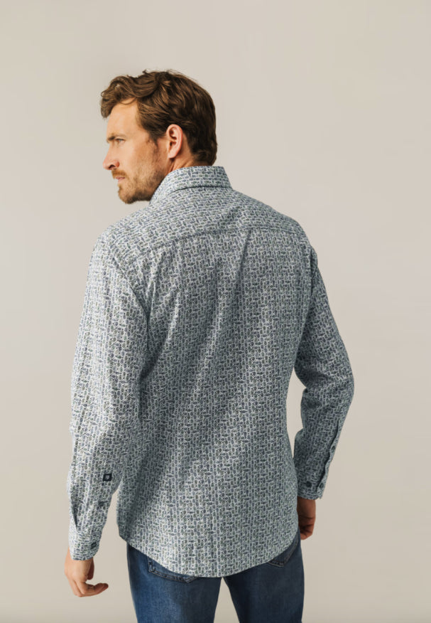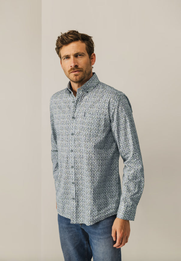 Dit overhemd met all-over print heeft een regular fit, button-downkraag en een borstzak. Gemaakt van katoen met stretch voor extra comfort. De fijne, gladde poplinweving geeft het model een lichte en ademende kwaliteit met een subtiel voelbare structuur, waardoor het prettig draagt en een verzorgde look heeft.