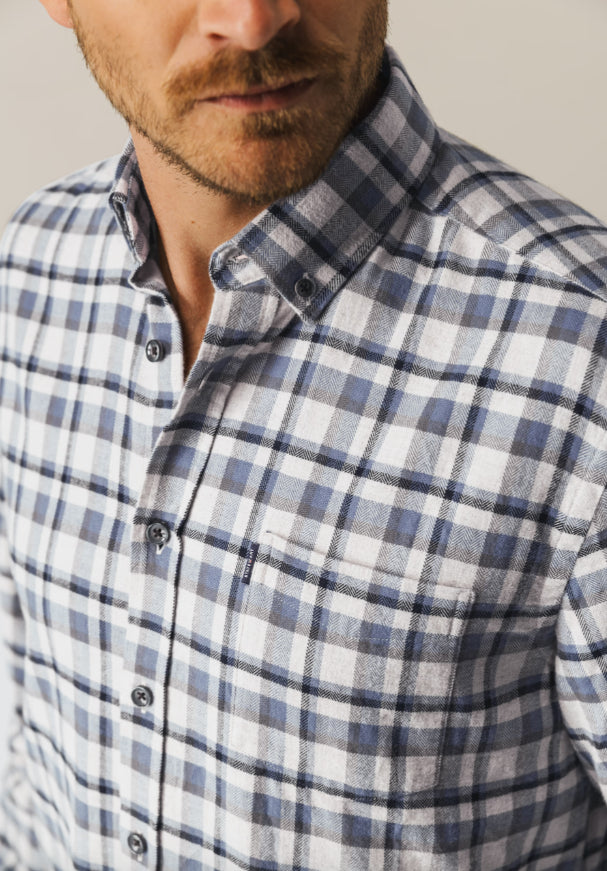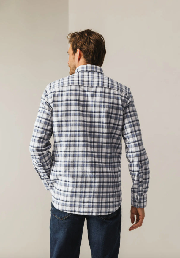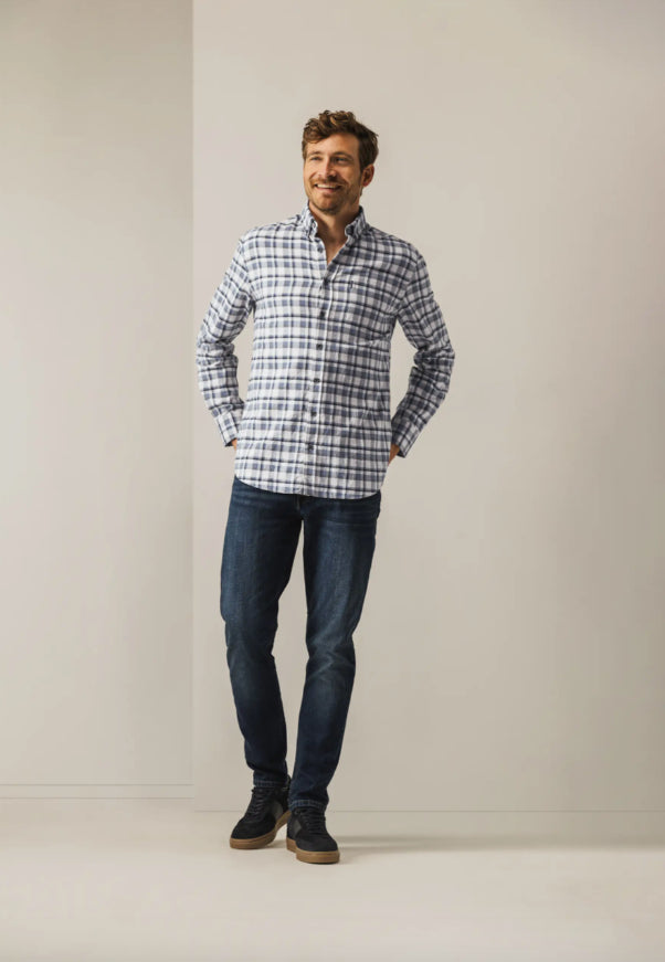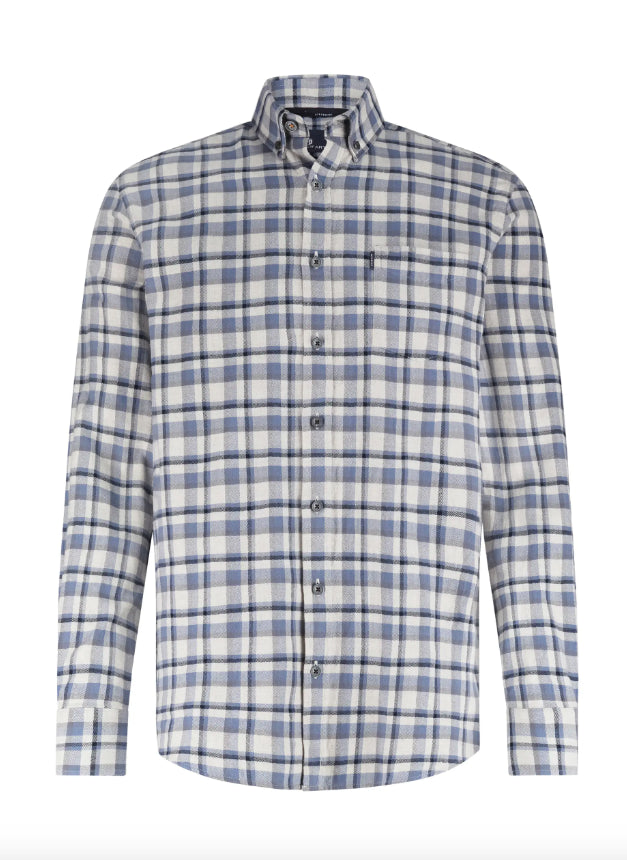 Dit overhemd heeft een stijlvol ruitdessin en een button-downkraag, terwijl de borstzak zorgt voor een praktische touch. De regular fit biedt comfort en een tijdloze uitstraling. Het is gemaakt van luxueus katoen met een subtiel visgraatmotief dat diepte geeft aan de stof en het overhemd net dat beetje extra karakter en klasse meegeeft.