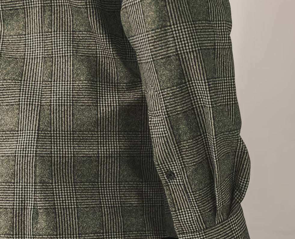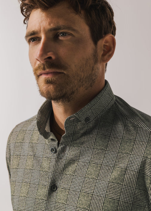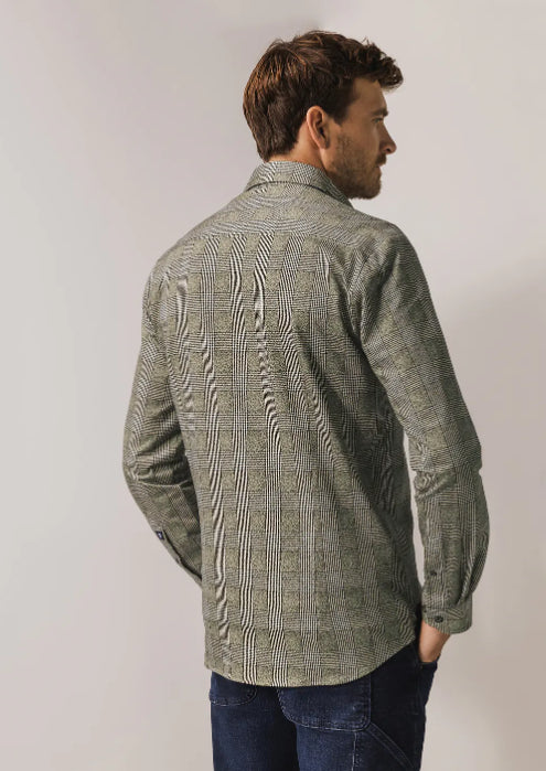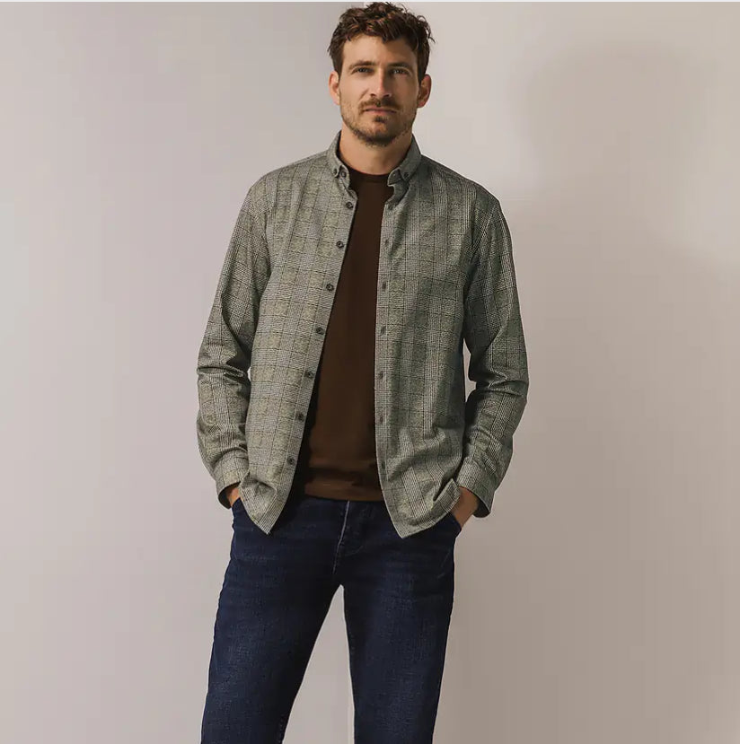 De stof valt soepel en voelt licht elastisch aan, terwijl het ruitdessin het ontwerp een klassieke uitstraling geeft.