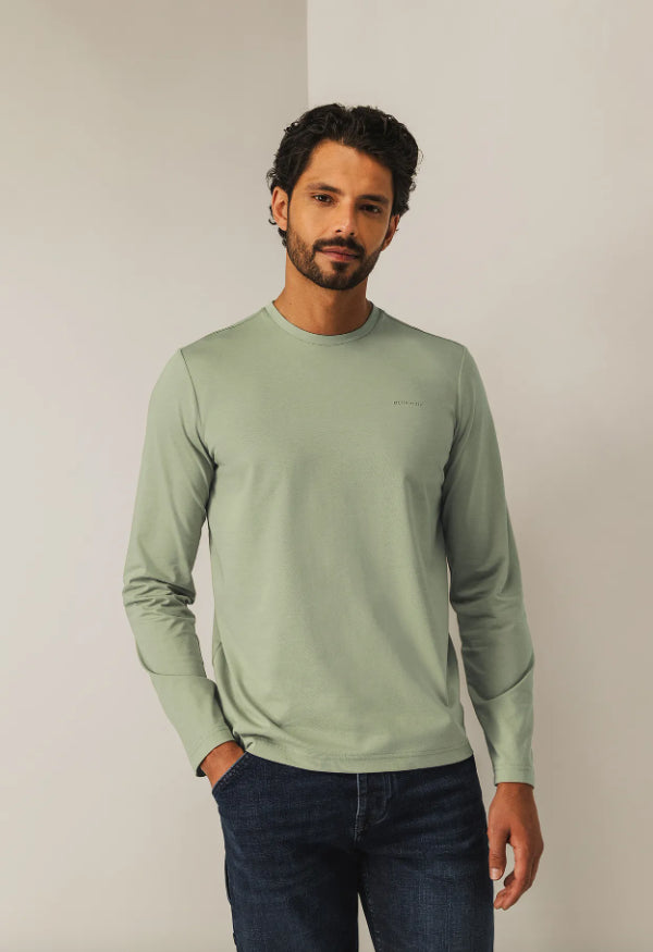 Dit regular fit T-shirt met ronde hals is uitgevoerd in een blend van katoen en polyester en voorzien van een subtiel 3D-rubberlogo. De Sorona jerseystof biedt extra elasticiteit, voelt heerlijk zacht aan en behoudt langdurig zijn vorm, waardoor je verzekerd bent van optimaal comfort en een verzorgde uitstraling.
