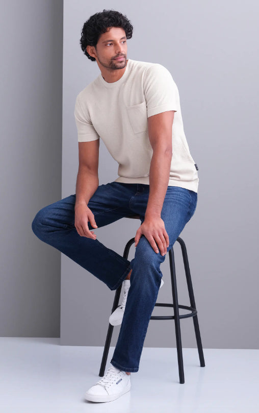 Dit gebreide T-shirt met korte mouwen en regular fit heeft een ronde hals en een borstzak als praktisch detail.