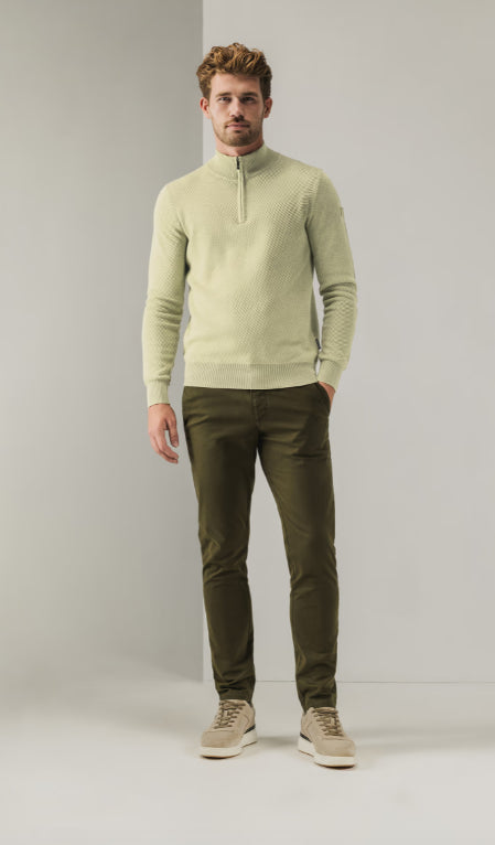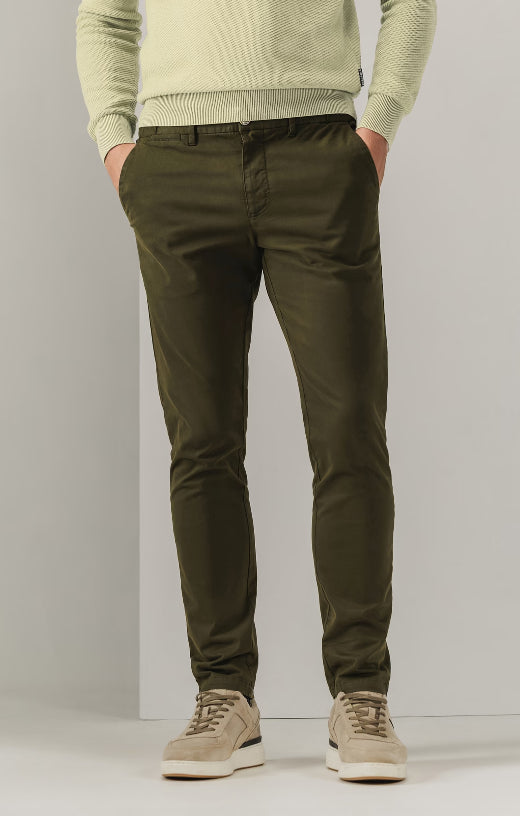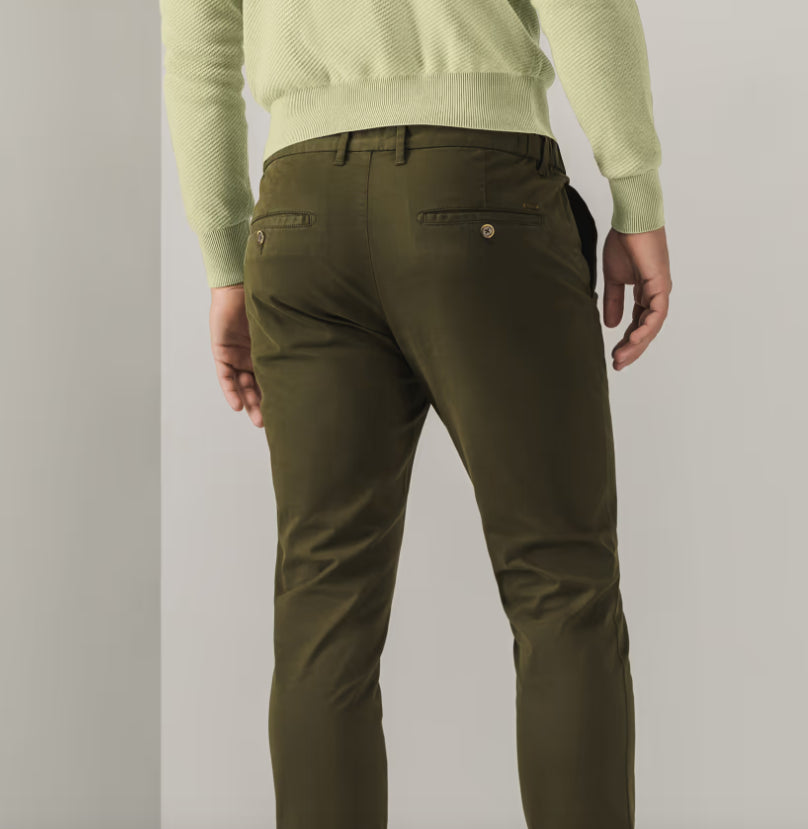 Deze NAVIGATOR twill chino in stretchstof is vervaardigd van katoen met elastaan, waardoor de stof stevig aanvoelt en soepel valt.