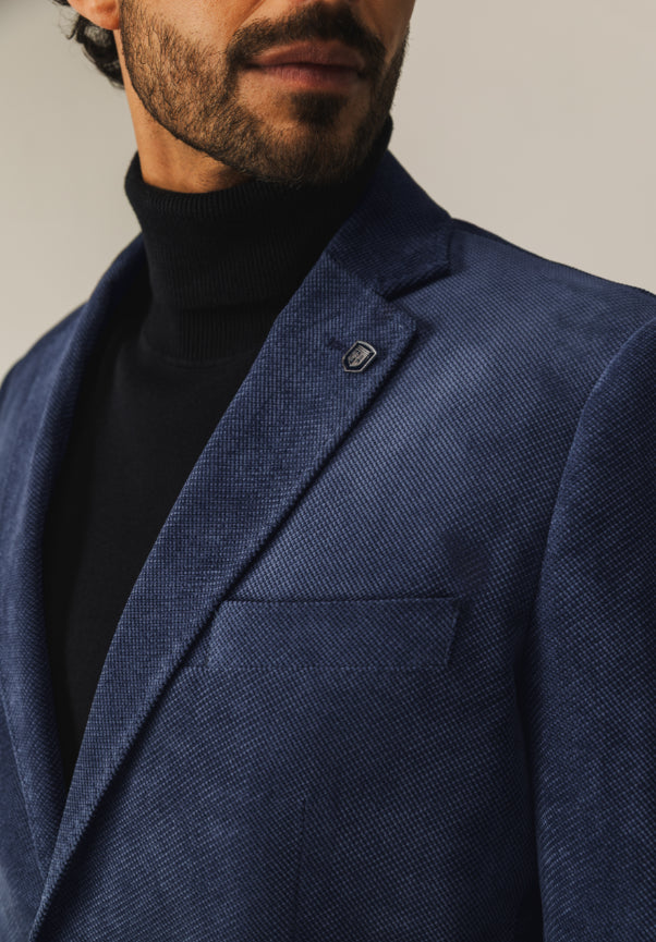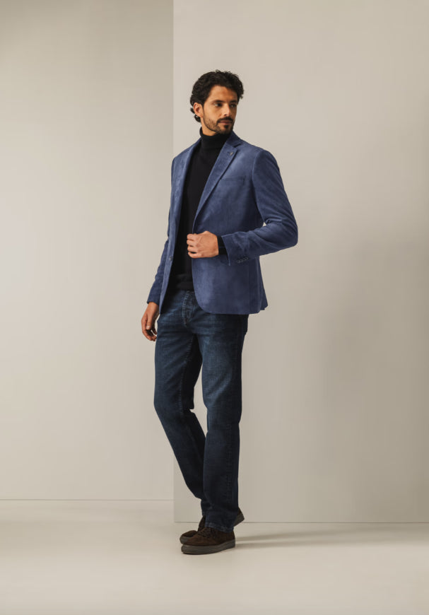 Deze regular fit blazer met klassieke reverskraag en pin is uitgevoerd in zachte babycord: een fijne variant van corduroy met smalle ribbels, een soepele valling en subtiele structuur. De blazer is volledig gevoerd en sluit met twee knopen, terwijl klepzakken, binnenzakken en loopsplitten achter zorgen voor een verzorgde uitstraling en optimaal draagcomfort.