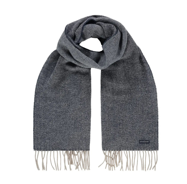 Deze effen sjaal met lange franjes is 180 cm lang, 30 à 32 cm breed en afgewerkt met een subtiel merklabel.