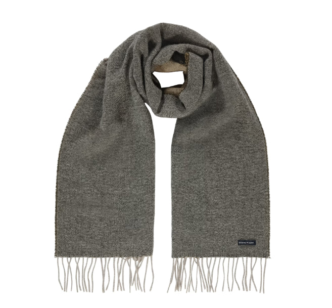 Deze effen sjaal met lange franjes is 180 cm lang, 30 à 32 cm breed en afgewerkt met een subtiel merklabel.