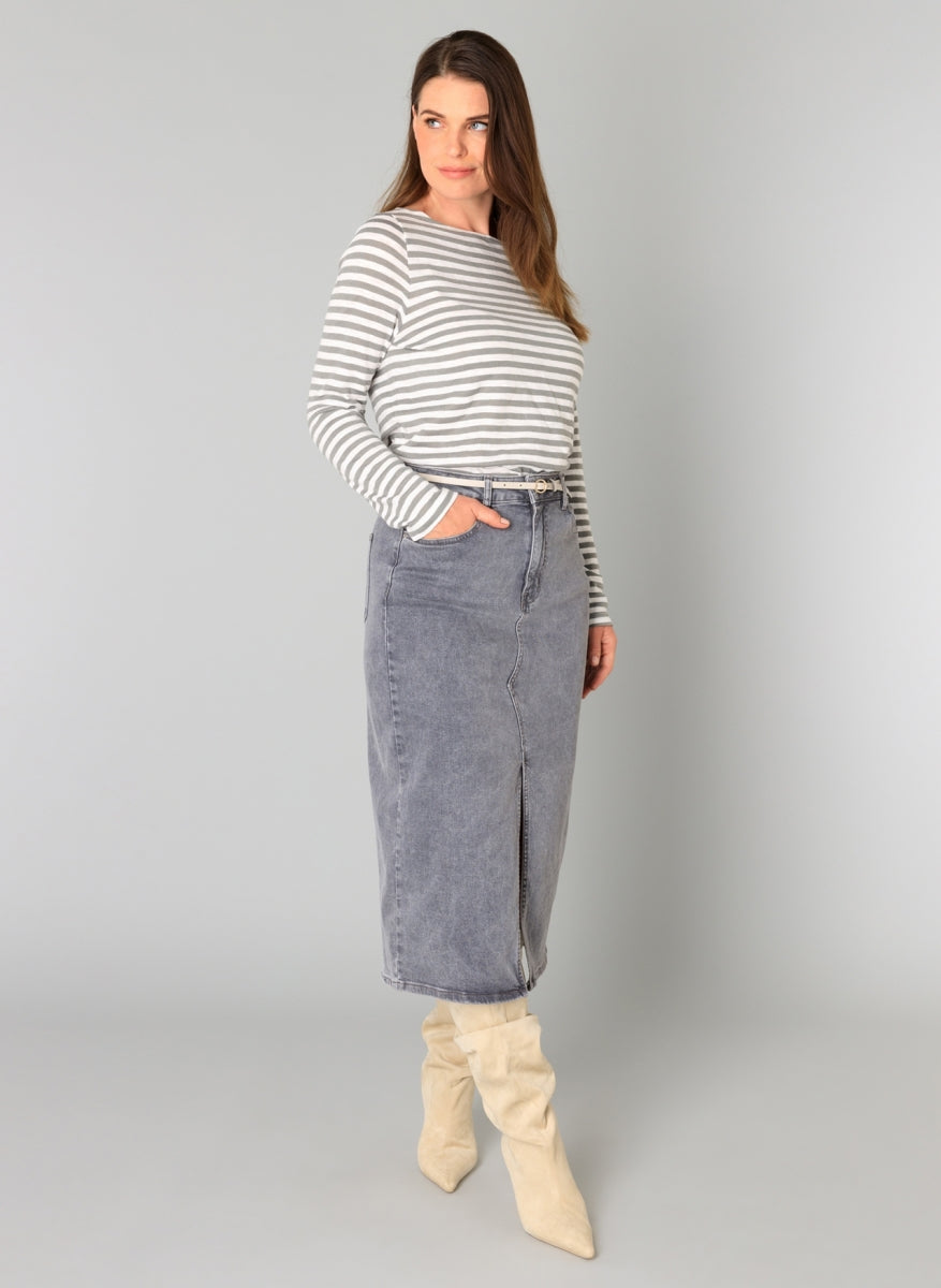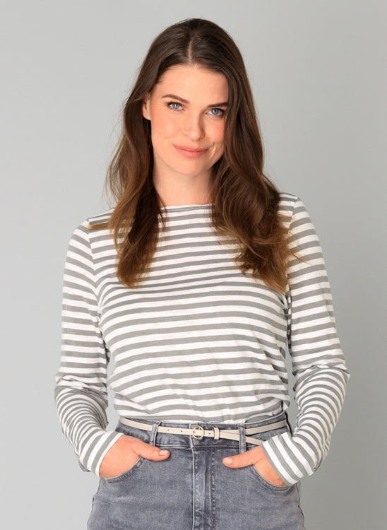 Deze gestreepte longsleeve combineert een klassieke boothals met een zachte mix van polyester en katoen.